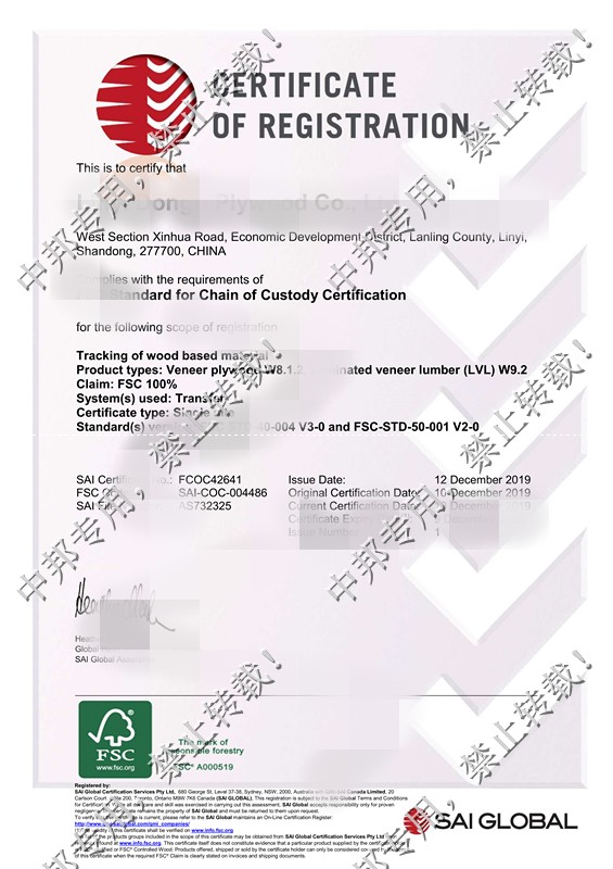 恭贺临沂XX木业有限公司2019年11月顺利通过FSC认证!