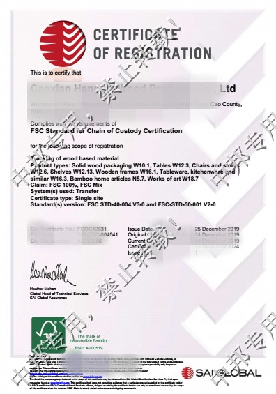 恭贺曹县XX木业有限公司2019年12月顺利通过FSC认证!
