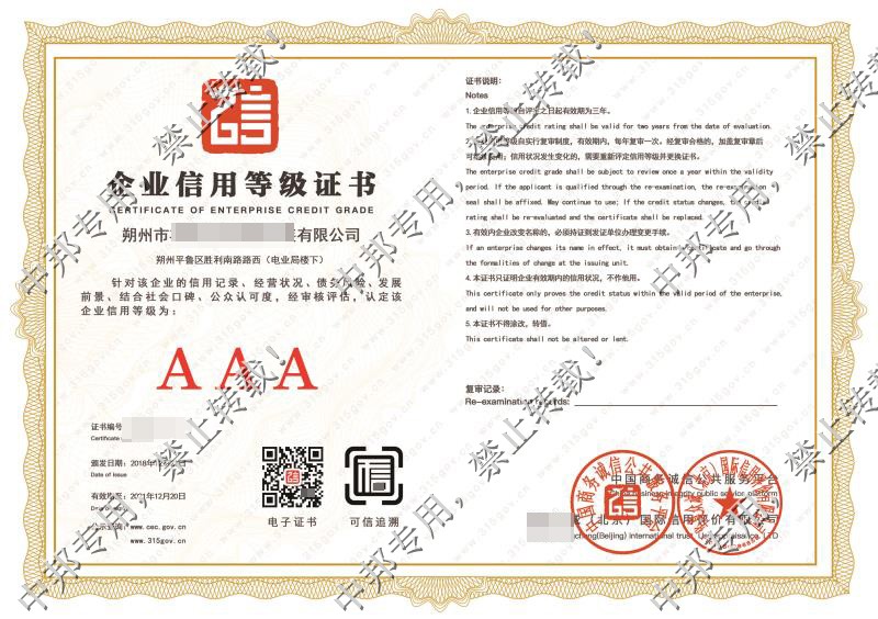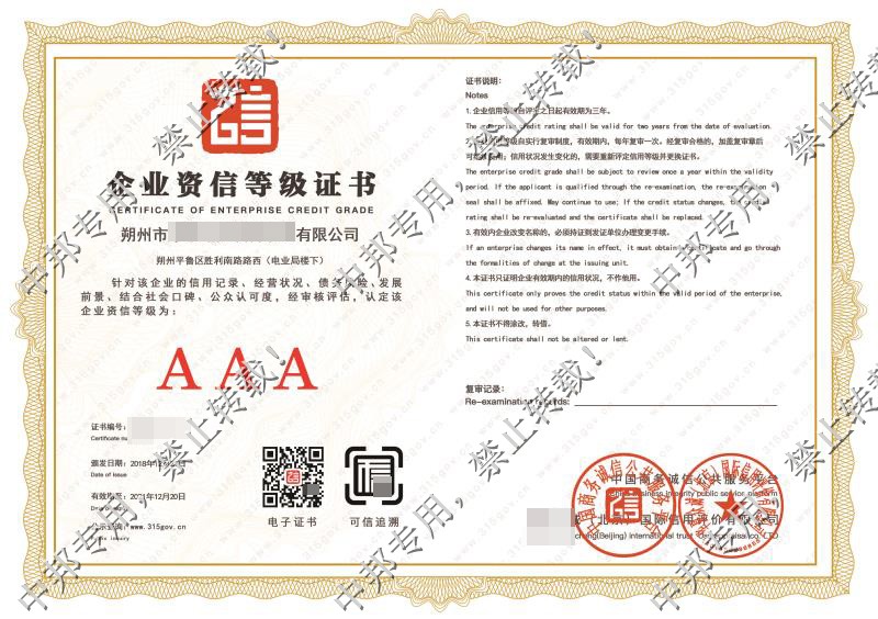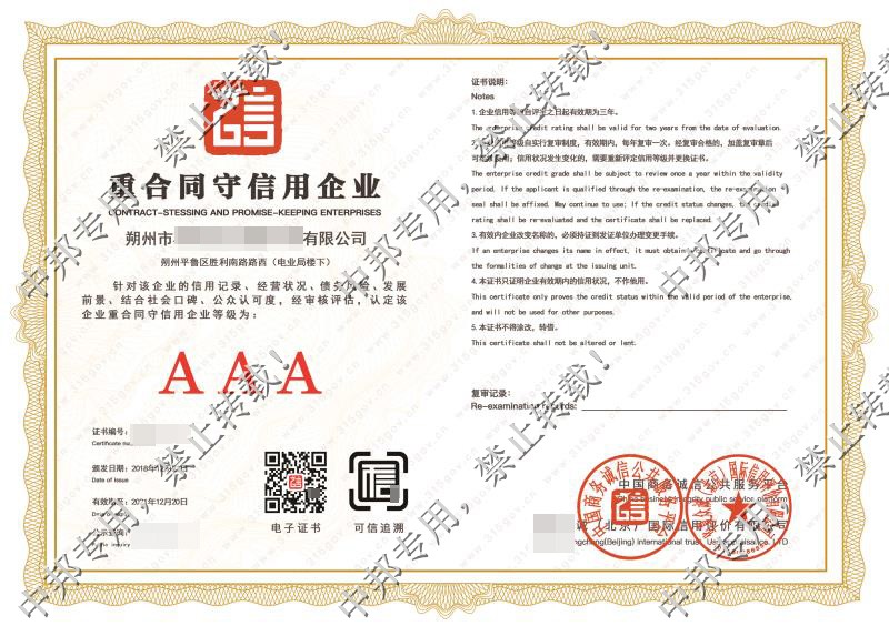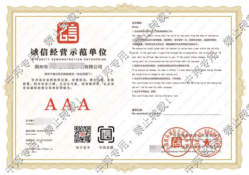 恭贺朔州市XX电力设备承装有限公司2018年12月顺利通过AAA认证!