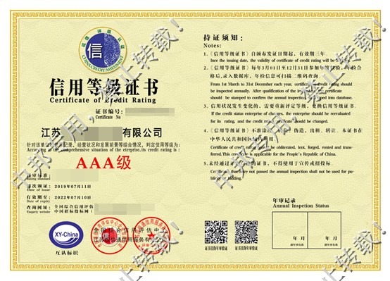 恭贺江苏XX智能系统有限公司2019年7月顺利通过AAA认证!