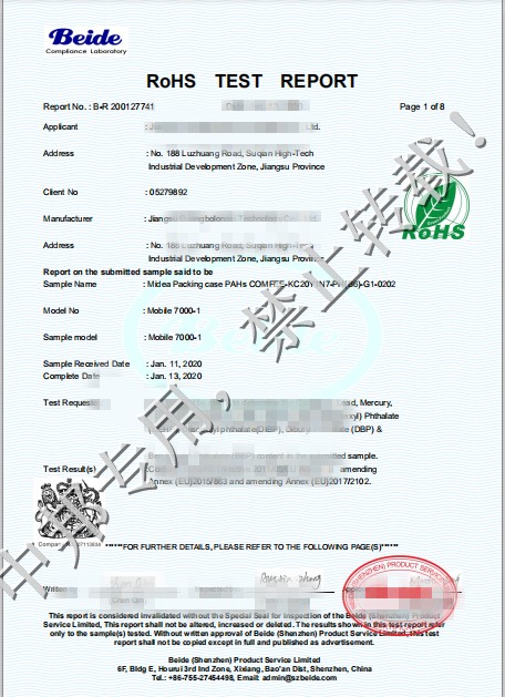 恭贺江苏XX科技有限公司2020年1月顺利通过Reach认证!