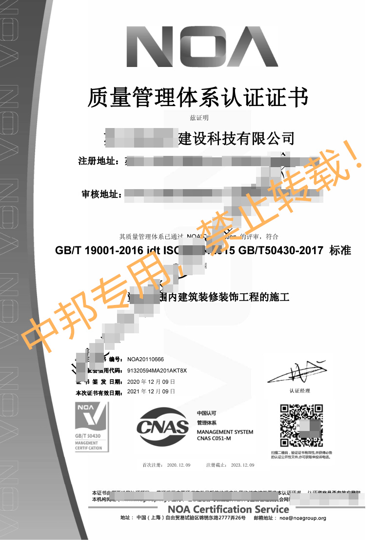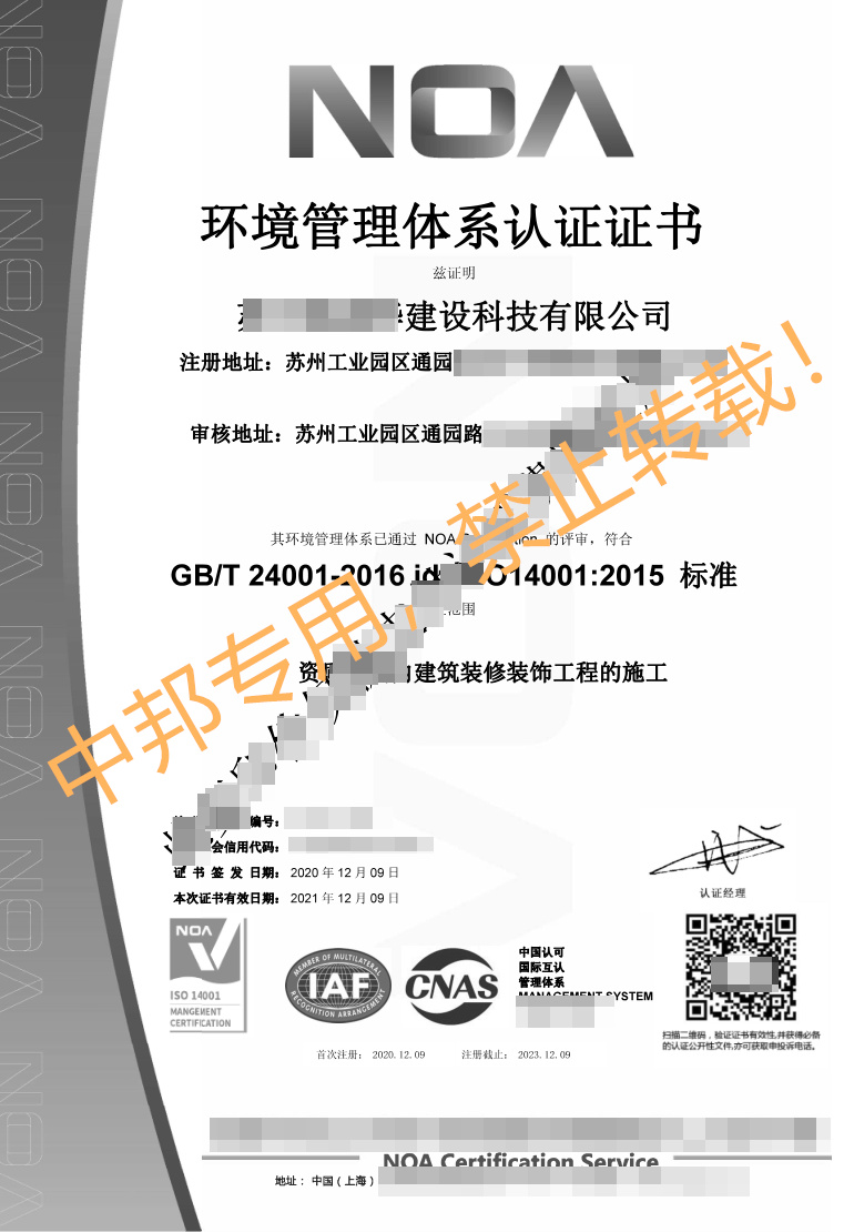 恭贺苏州XXX建设科技有限公司2020年12月顺利通过ISO三体系认证