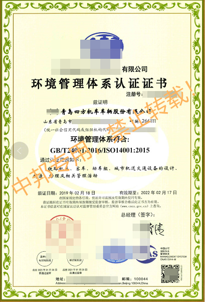 恭贺XX青岛四方机车车辆股份有限公司2019年2月顺利通过ISO三体系认证