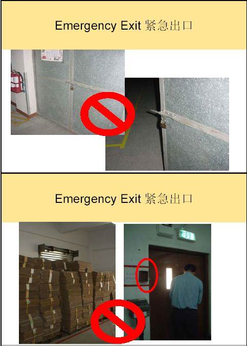 ü  紧急出口的门不能上锁,铁扣,铁链,固定螺栓和其它的上锁设备