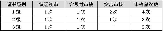 -证书有效期内的审核总次数详见下表